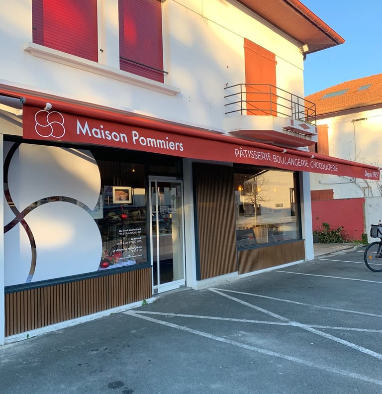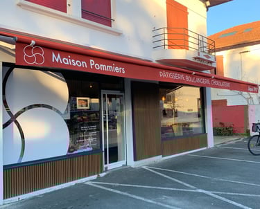 Aujourd'hui, la pâtisserie Maison Pommiers à Anglet bénéficie d'une vitrine qui reflète pleinement son excellence, grâce à une conception de projet sur mesure et une rénovation pensée dans les règles de l’art, fidèle à l'esprit du Pays Basque.