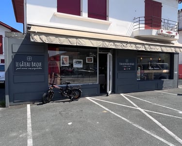 Projet de rénovation sur mesure pour la façade d'une pâtisserie à Anglet : modernisation, vitrophanie et conception locale au cœur du Pays Basque.